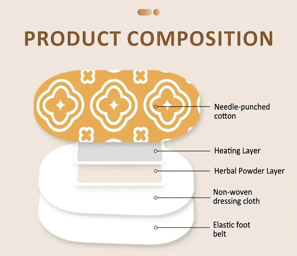 • Herbal powder layer: It is the core of steam heating herbal pain relief patches. It contains a variety of natural herbal ingredients and each has unique pharmacological effects. In the environment of steam heating, these herbal extracted ingredients can be better released, and with the help of warmth, they accelerate the hydration of the skin stratum corneum, open pore channels, and then penetrate into the subcutaneous tissue, reaching the painful area, and exert synergistic pain relief.