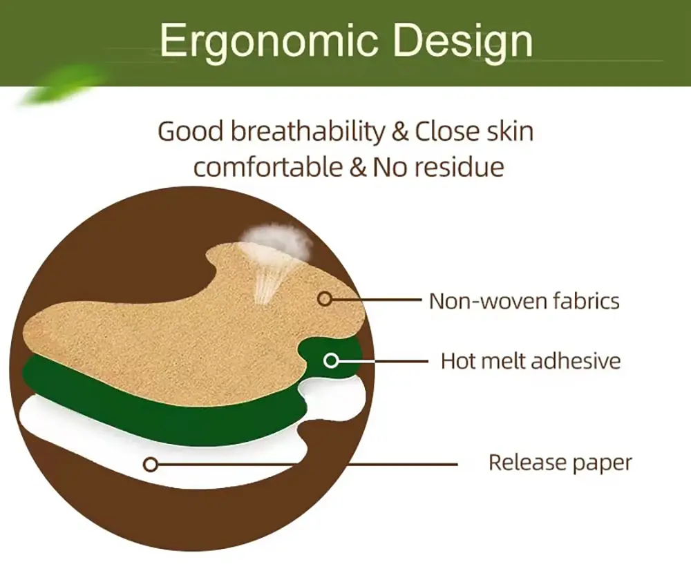 At its core is a soothing formula of "natural plant extracts + deep penetration": Carefully selected traditional bone-nourishing herbs like pubescent angelica, eucommia, and achyranthes root are cold-extracted to preserve their active ingredients, integrated into a breathable patch base. When applied to the knee, it delivers ingredients around the joint cavity via transdermal absorption, helping improve local circulation, reduce inflammation-related nerve irritation, and ease soreness, sharp pain, and stiffness caused by arthritis. Menthol is added to balance the herbal efficacy, avoiding irritation and making relief gentler—acting more directly on the knee than oral medications, ideal for long-term care.